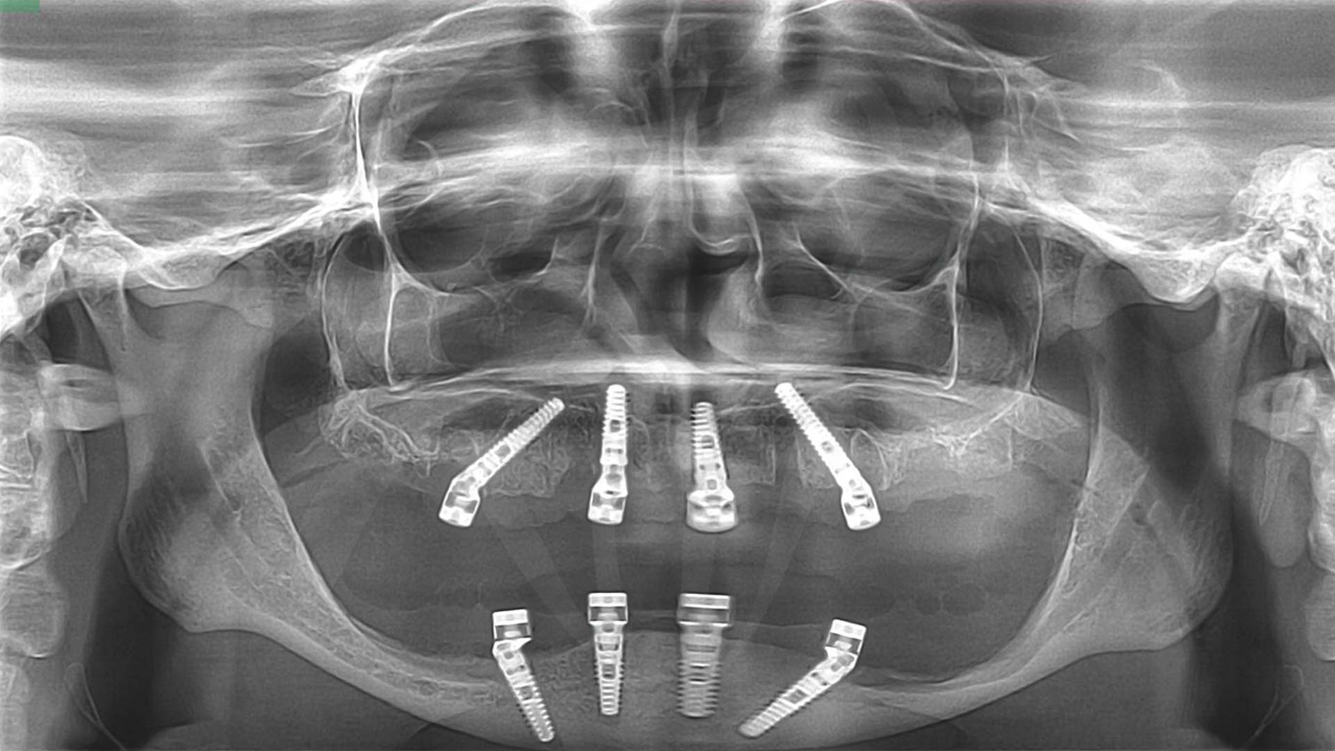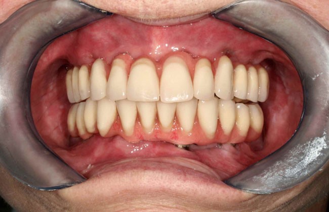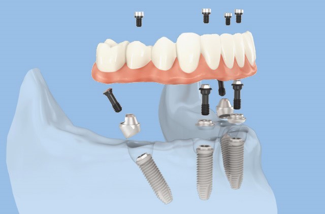 All-on-4 = Teljes foghiány pótlása csontpótlás nélkül, 4 implantátumon rögzített körhíddal
